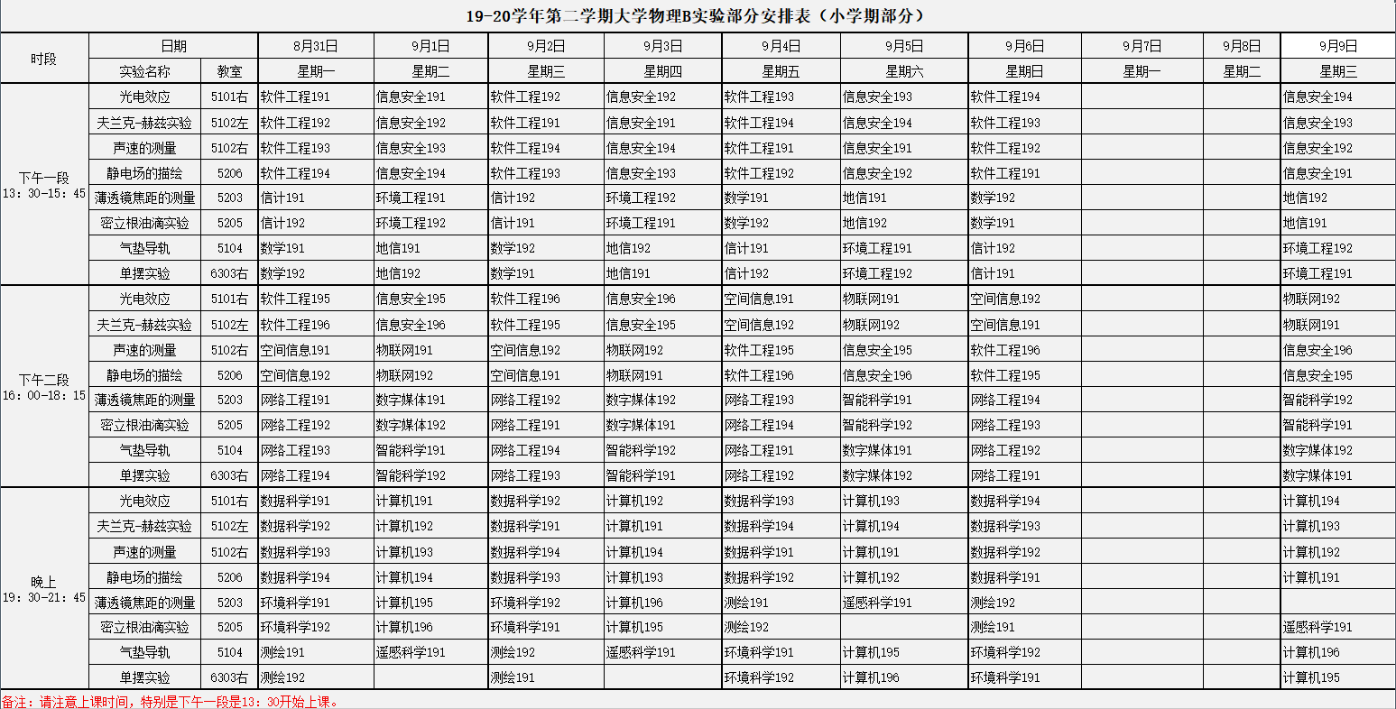 关于19-20学年第二学期《大学物理B》课程实验安排的通知