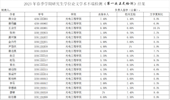 2023年春季学期研究生学位论文学术不端检测结果(第一次正式检测)-伟德源自英国始于1946