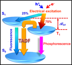 图1 延迟荧光材料的分子设计、光物理与器件物理性能表征