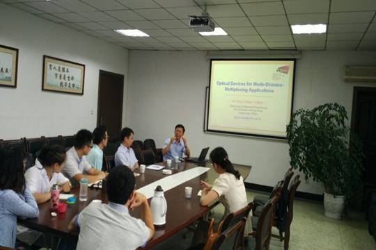 8月26日上午,香港城市大学电子工程系首席教授、美国光学学会(OSA)会士(Fellow)郑建成博士应光电技术公司邀请,在信息楼312会议室作了题为《模分复用关键器件研究》的学术报告。光电技术公司光波导器件与集成、光电信息材料与器件、微系统与LTCC技术等科研团队部分成员参加了此次报告会,报告由公司经理朱兴华教授主持。