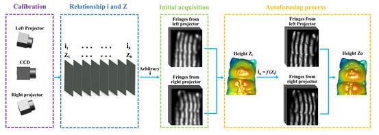该论文提出了利用具有双投影仪和装有电子可调焦镜头(ETL)的相机实现三维(3D)面形的自动对焦测量。该技术不仅解决了在仪器、测量和计量学中3D形状测量系统的景深限制,同时还从根本上解决了数字条纹投影技术的极具挑战性问题:如何实现自动对焦?