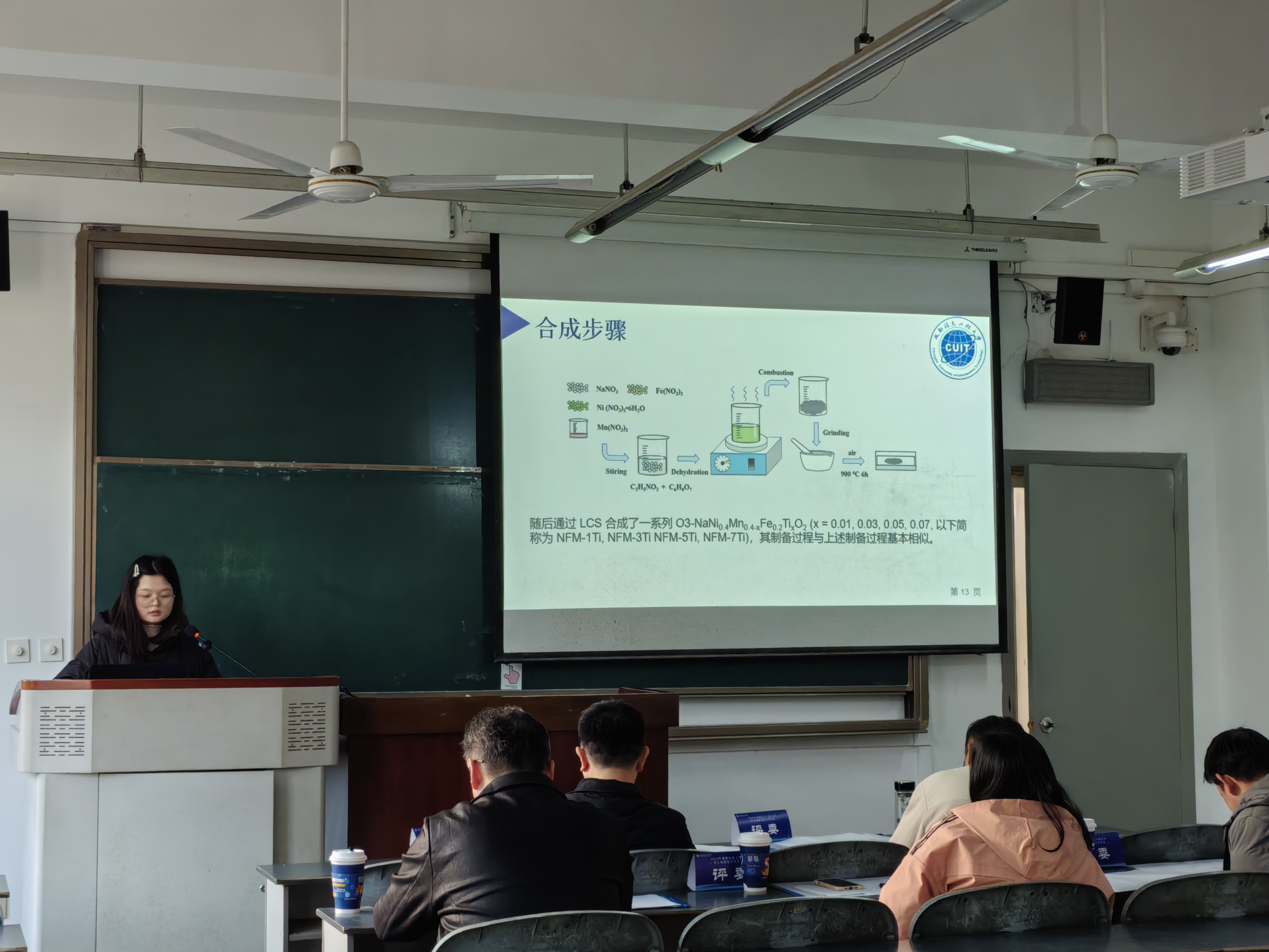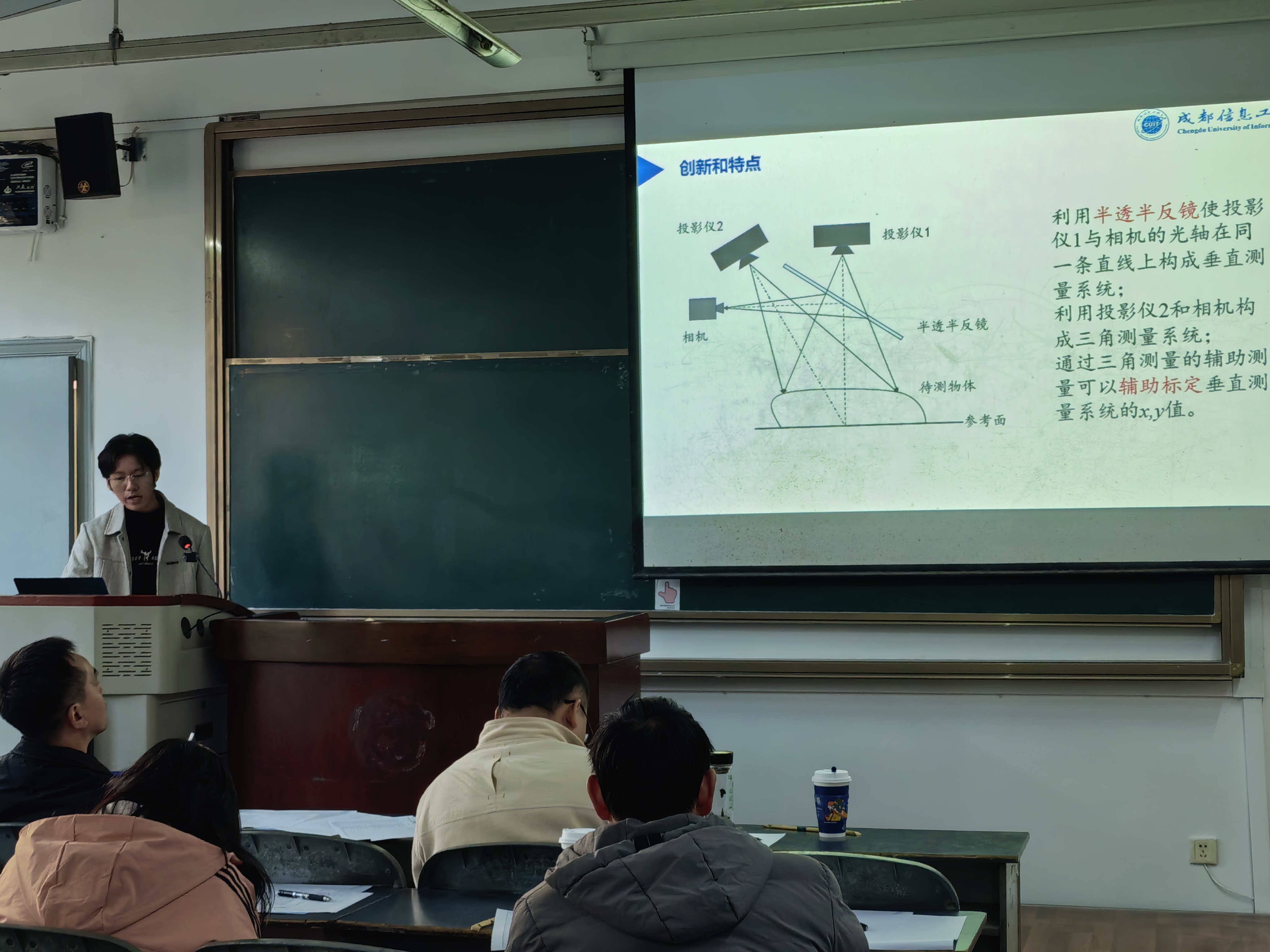 由崔旭梅教授指导的研究生何佳欣作题为《基于低温燃烧法合成O3型钠离子电池正极材料研究》的报告,报告展示了课题组特色低温燃烧法合成的新型钠离子电池优异的电化学性能,最佳的钛掺杂明显提高了电池的循环稳定性和高倍率放电能力。由罗莉副教授指导的研究生邹雨欣报告题目为《基于超构表面的快照式太赫兹偏振解析》,简化了太赫兹波段的偏振解析方法,真正实现了单次测量直观反应偏振状态。由钟敏副教授指导的研究生段鹏作题为《基于结构光投影调制度测量轮廓术系统标定的研究》的报告,其三角测量辅助垂直测量进行三维重建的方法,使得重建精度变高的同时也规避了垂直三角测量被遮挡的问题。