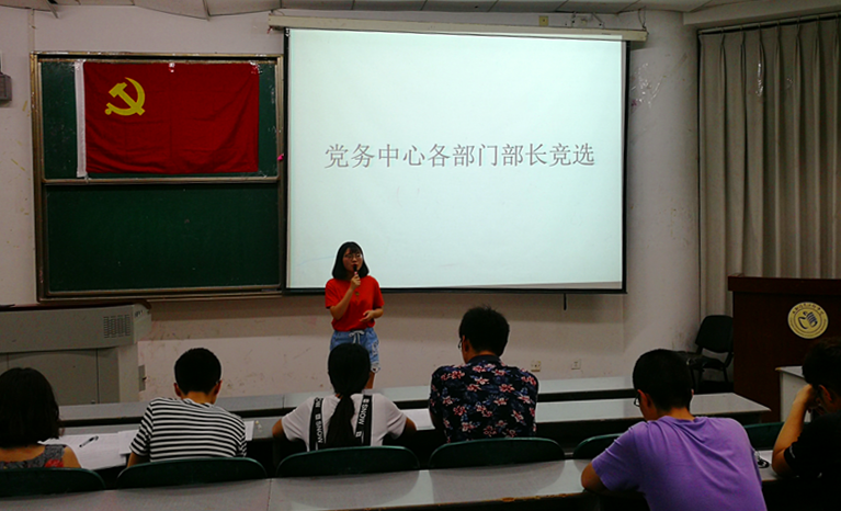 会议开始前,戴权同志对此次会议的流程就行了简要的叙述,会议开始,积极分子们分别上台进行了自我介绍,并对自己为什么竞选此职位及竞选的优势在哪进行了简述,正式党员们也对积极分子进行了提问。积极分子自述后,党员们发表了自己的意见并积极推荐优秀的积极分子,为党支部提供优秀人选。