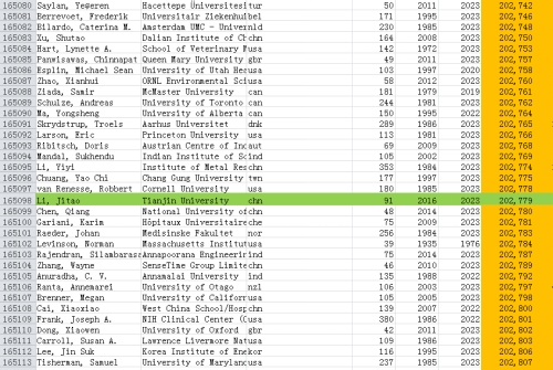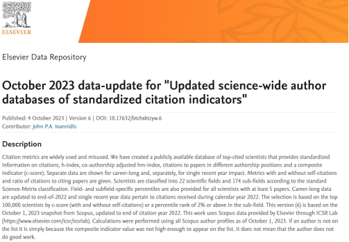 数据来源:Ioannidis, John P.A. (2023), “October 2023 data-update for "Updated science-wide author databases of standardized citation indicators"”, Elsevier Data Repository, V6, doi: 10.17632/btchxktzyw.6