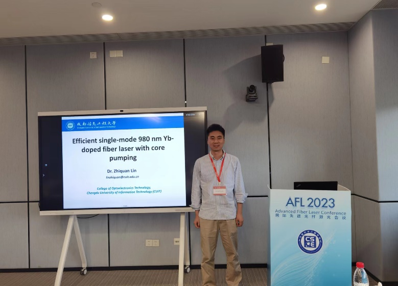 会议的主题包括光纤及光纤器件、高功率光纤激光器、超快光纤激光器和非线性光纤光学、中红外光纤激光器及超连续谱、激光应用等,设立“Fiber Laser in 2023”评选、青年科学家论坛、员工论坛等活动。会上,林治全博士“Efficient single-mode 980 nm Yb-doped fiber laser with core pumping”为题介绍了一种基于纤芯泵浦获取高效率980nm激光输出的新途径及近期在高功率900nm波段掺钕光纤激光器方面的重要进展。